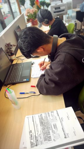 春期講習の前後は、防音自習室で学校の課題に取り組む姿も。 講習だけでなく、自習室も早速フル活用してくれています。